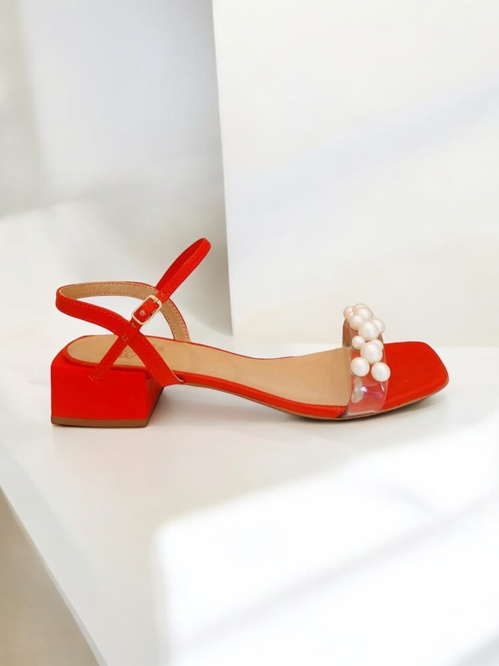 A sandália de salto baixo Pérola Vermelho, além de ser super confortável, completa o visual com atitude. A peça produzida em material sintético, possui bico quadrado, tira frontalem vinil com detalhe tipo pérolas, salto baixo bloco no ton vermelho e fechamento por fivela ajustável no tornozelo.