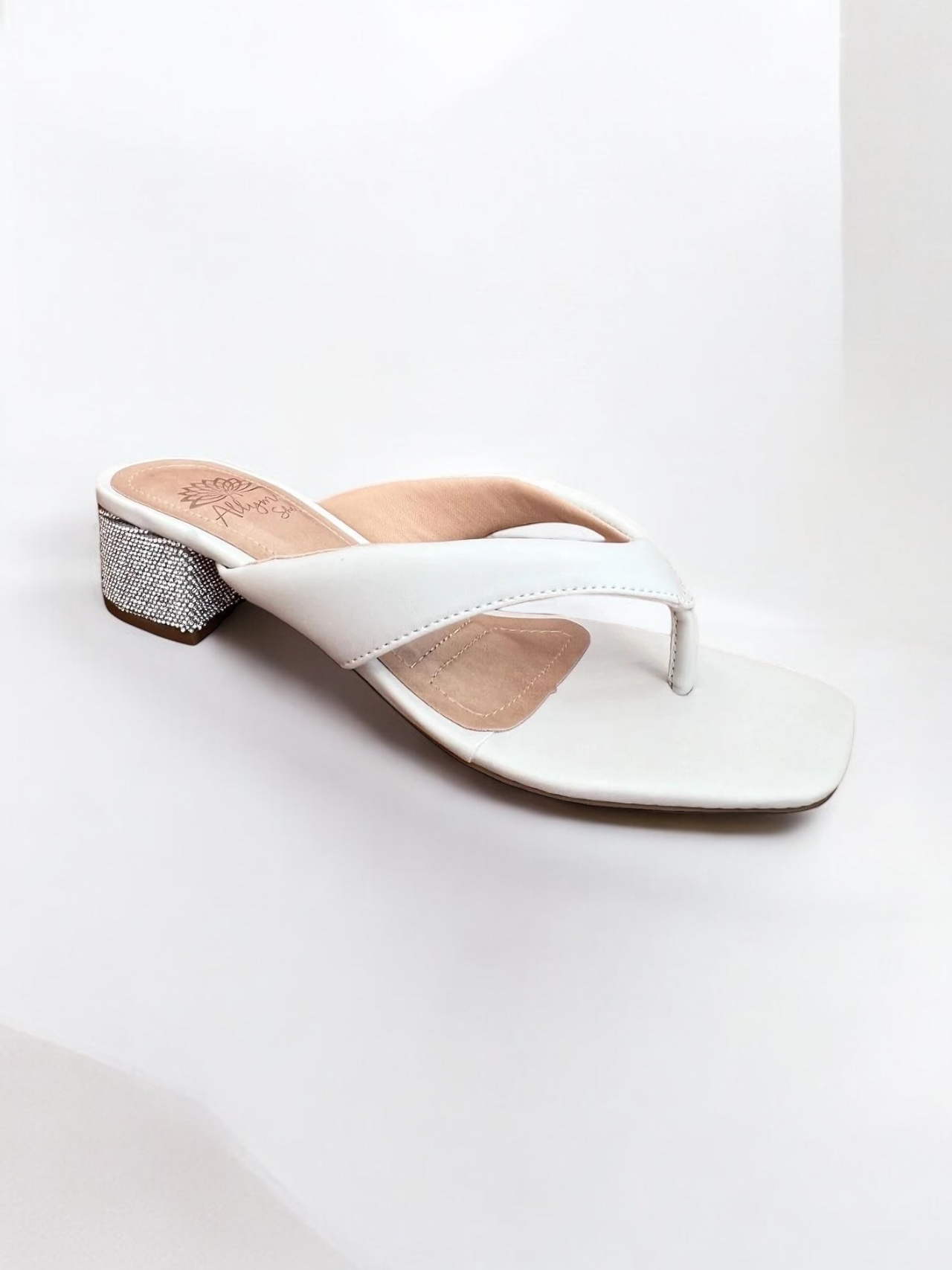 Este tamanco é a combinação perfeita de conforto e sofisticação. O modelo clássico ganha contornos atuais, mantendo o refinamento e luxo. Produzido em material tecnológico no tom off, o novo tamanco Allyma Shoes possui o bico quadrado, uma tira de dedo, salto baixo quadrado com aplique de manta de strass trazendo uma elegancia.