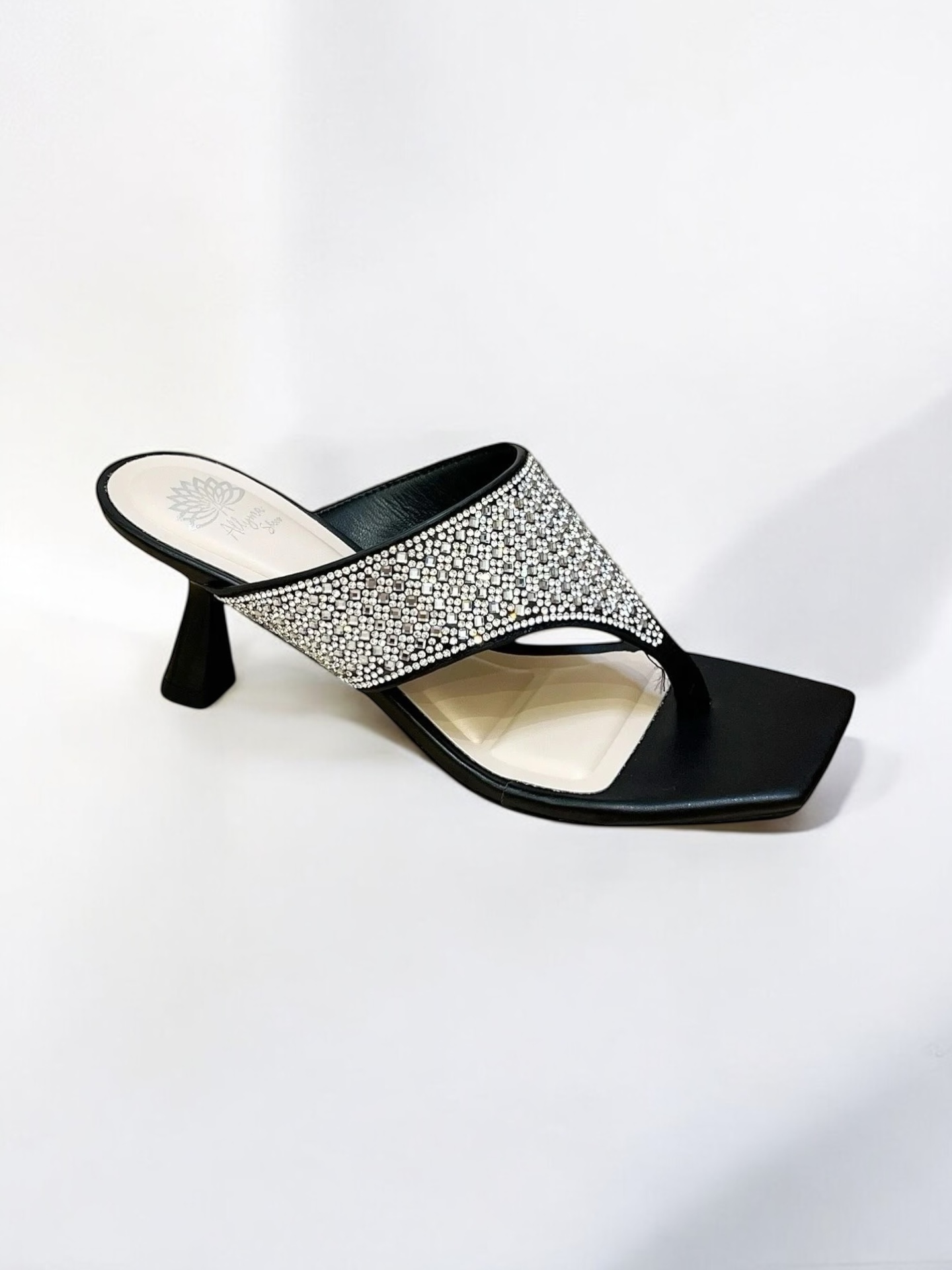 Brilhe em cada passo com nosso tamanco preto com pedrarias